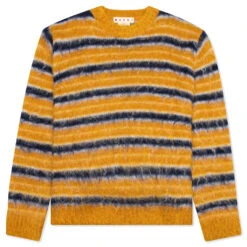 Composed of a blend of wool, the Roundneck Sweater from Marni makes a statement within any apparel collection. Marni’s premium aesthetics are present, as ribbed detailing can be seen at the ribbed neckline, cuffs, and hem. The stitched striping finishes the look.