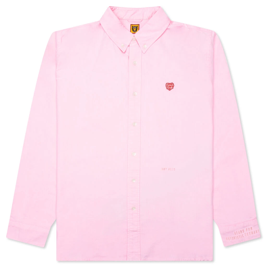 Made from cotton, the Human Made Oxford B.D L/S Shirt makes an impression on any wardrobe with its heart logo patch at the chest and embroidered logo on the left front and left sleeve. A button-down closure is placed in addition to a pointed collar and barrel cuffs.