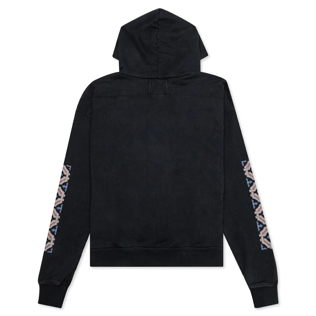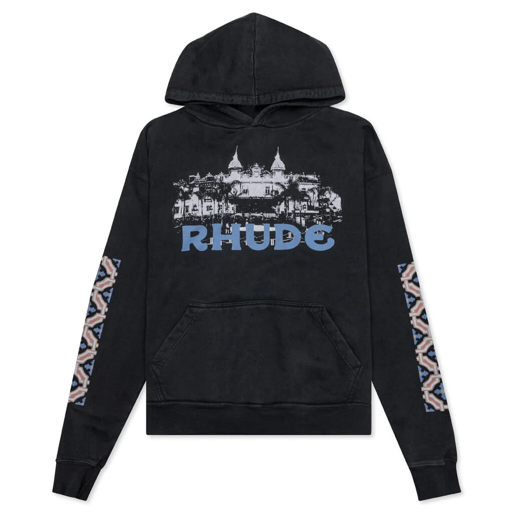 The Rhude Casino Hoodie features vintage Western aesthetics. The premium design’s cotton silhouette offers breathability, while ribbed details can be seen at the cuffs and hem. Screen-printed branding and graphics are placed at the chest, while additional graphics can be seen on the sleeves. The kangaroo pocket completes the look.